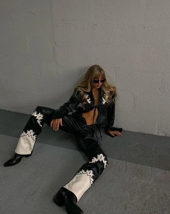 Experiment with metallics, bold geometric shapes, and unconventional silhouettes for a futuristic chic aesthetic. Accessories like metallic boots or statement earrings can enhance the overall vibe.